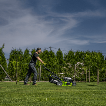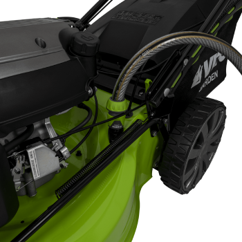 Máquina de Cortar Relva com Tração tem uma potência de 6.5cv, com um motor 4 tempos.