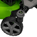 As rodas multidirecionais 360° na dianteira, tornam o trabalho mais ágil e prático, permitindo cortar as zonas mais difíceis nos jardins.